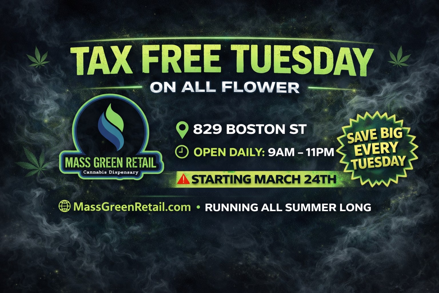 Tax-Free Tuesday on All Flower at Mass Green Retail